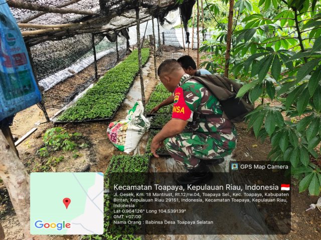 BINTAN— Personil Koramil 02/Bintim, Serma M.E. Sibarani, Babinsa Desa Toapaya Selatan, Kecamatan Toapaya, Kabupaten Bintan, melaksanakan kegiatan komunikasi sosial (komsos) bersama kelompok tani setempat, Jumat (27/2/2026) pukul 09.00 WIB hingga selesai.