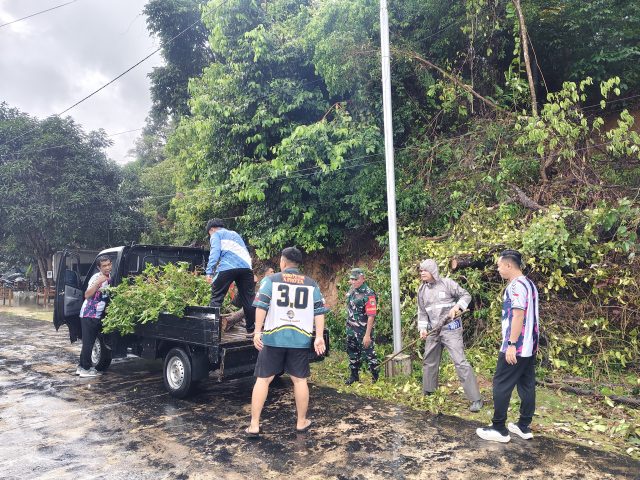 Kegiatan tersebut dilakukan sebagai bentuk kepedulian terhadap keselamatan warga, mengingat pohon-pohon yang tumbang berpotensi membahayakan pengguna jalan serta mengganggu jaringan listrik di wilayah tersebut, Jumat (27/2/2026)