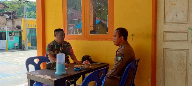 TAMBELAN – Babinsa Desa Kampung Hilir Koramil 07/Tambelan Kodim 0315/Tanjungpinang, Peltu M Hasanuddin melaksanakan komunikasi sosial (komsos) bersama personel Satpol PP, Alit, di Gedung Bintan Timur, Kecamatan Tambelan, Rabu (8/4/2026)