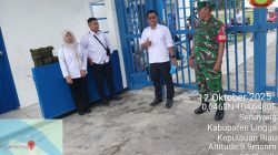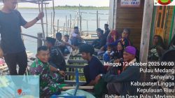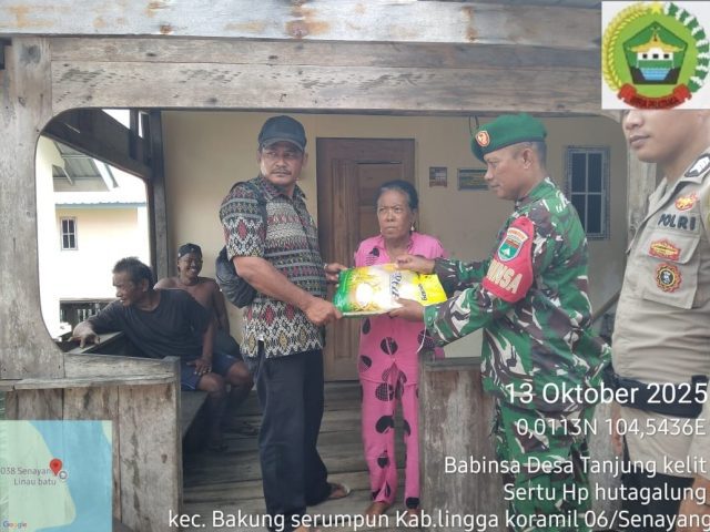 LINGGA – Babinsa Desa Tanjung Kelit, Kecamatan Bakung Serumpun, Kabupaten Lingga, Sertu HP Hutagalung, melaksanakan kegiatan pendampingan pembagian beras bantuan dari pemerintah desa, Senin (13/10/2025).