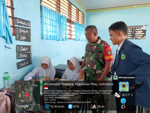 BINTAN – Anggota Koramil 02/Bintan Timur, Serma H. Hutabalian, melaksanakan kegiatan monitoring pembagian makanan bergizi di wilayah Kelurahan Toapaya Asri, Kecamatan Toapaya, pada Senin (13/10/2025) pukul 08.00 hingga 12.30 WIB.